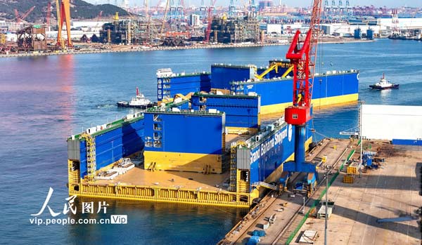 12万吨举力浮船坞在山东青岛启运
