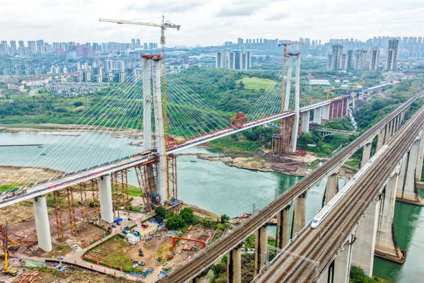 3月31日,由中铁大桥局承建的成渝中线高铁井口嘉陵江特大桥顺利合龙,标志着成渝中线高铁全线桥梁全部合龙,为按期通车奠定了坚实基础。