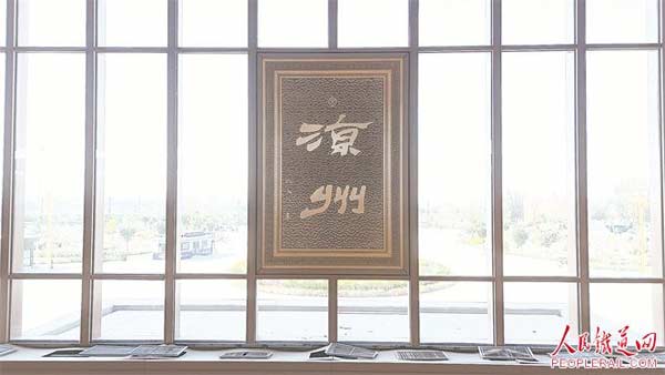 武威站站房出入口铜牌匾上的“武威”与“凉州”标识,字体出自武威汉简。强 科 摄