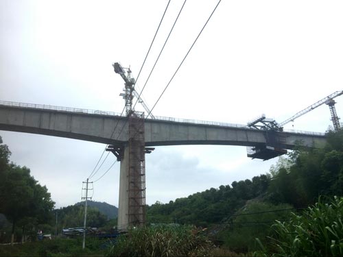 施工前,项目部多次组织召开了专题会,并及时办理了跨省道、跨高速公路等施工手续,施工中严格执行相关规范和要求,技术人员严格技术交底;加强安全防护,利用车流间隙或封闭线路施工,在挂篮模板上增设防护网,关键部位设置安全警示牌;技术人员对预压、挂篮施工工艺把关,展开技术攻关,对结构进行分析、校对、反复测量,控制各阶段预拱度,全程监控梁线形与应力,确保了梁体精确合拢。