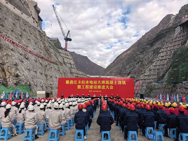 12月30日,雅砻江卡拉水电站大坝混凝土浇筑暨工程建设推进大会顺利召开,水电七局参建的雅砻江卡拉水电站大坝首仓碾压混凝土开始浇筑,标志电站从基坑开挖阶段正式转为大坝混凝土浇筑阶段。